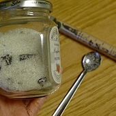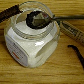 先將香草籽挖出加入砂糖混合,再將香草莢的外皮部分一併放入砂糖裡搖晃均勻,香草糖就完成啦^^