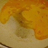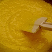 再按照書裡食譜中將蛋、低筋麵粉、泡打粉、糖、蛋等等以湯匙為單位的份量好好攪拌均勻,
