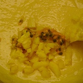 加上水果丁(書裡用的是鳳梨丁,我自己又加了我好愛的熱帶水果~百香果^^)一起攪拌