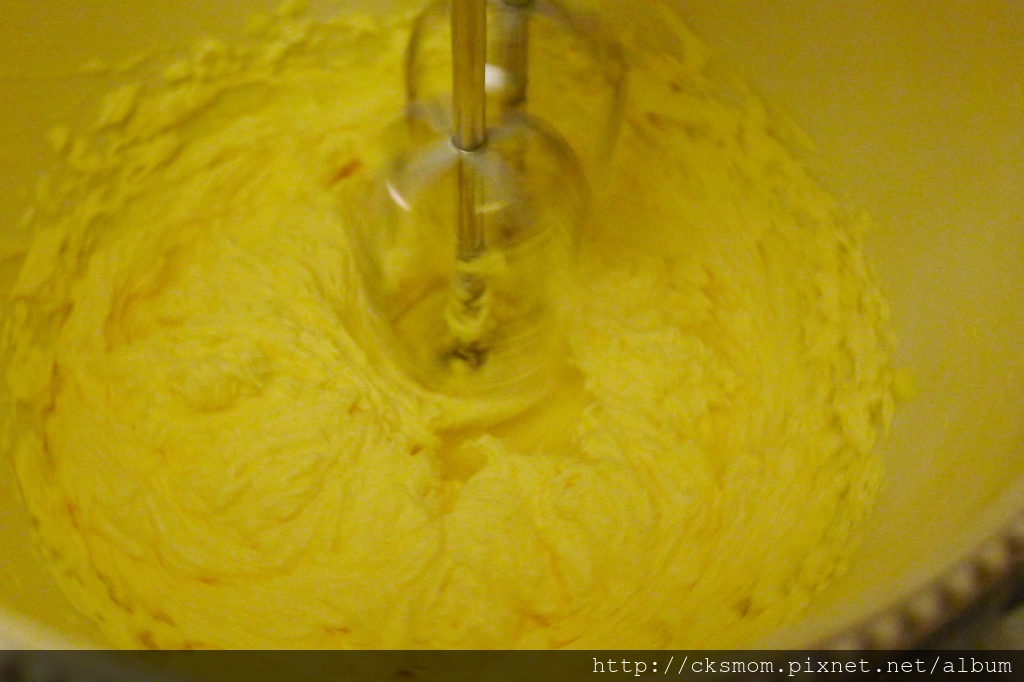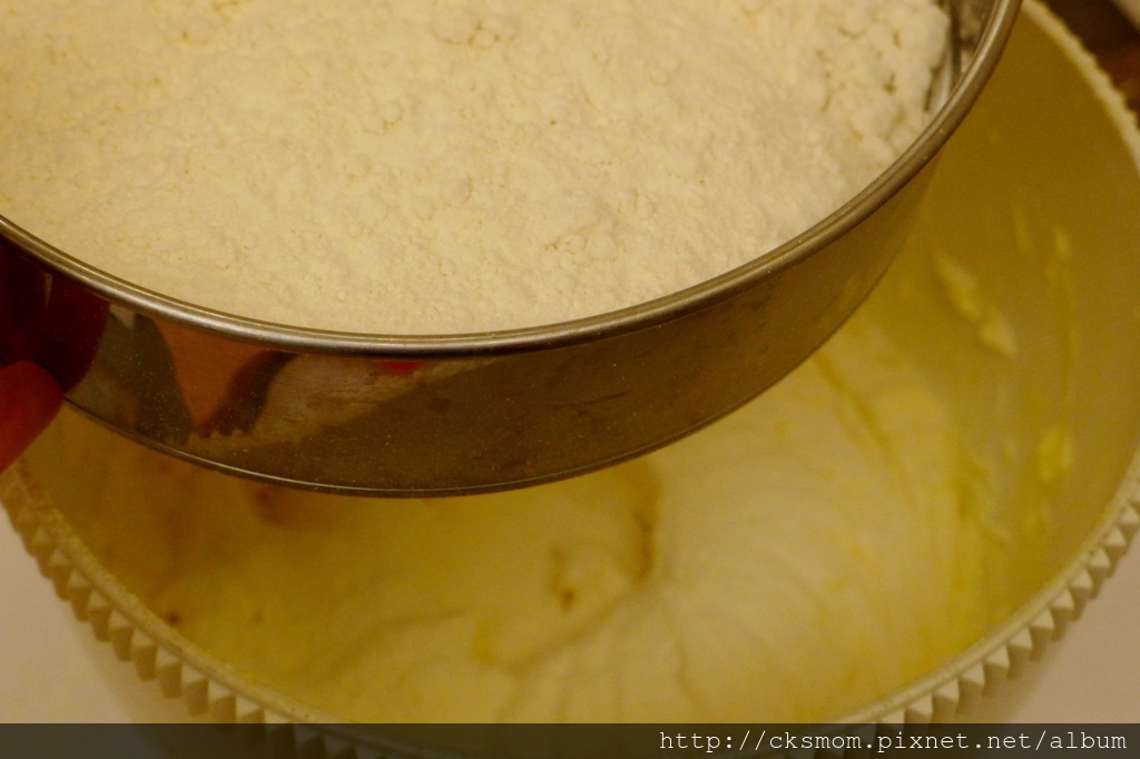 篩入糖粉以電動攪拌機攪拌均勻至顏色變白